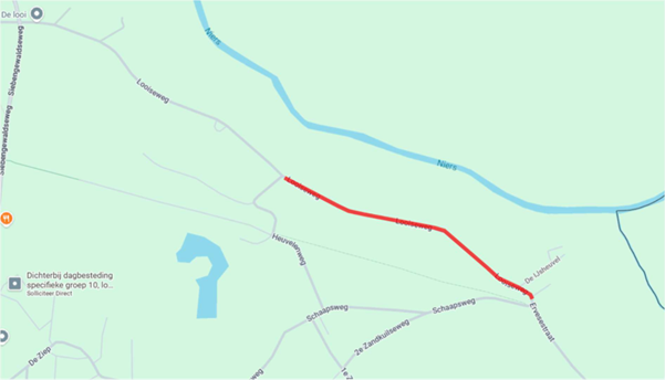 De Looiseweg is tijdens de werkzaamheden dicht voor doorgaand verkeer. Er komt een tijdelijke omleidingsroute. Deze wordt ter plaatste aangegeven met bebording. Woont u aan de Looiseweg? Dan kunt u uw woning of bedrijf blijven bereiken. U kunt wel hinder hebben van machines op de weg. De aannemer doet zijn best om dit zo beperkt mogelijk te houden.